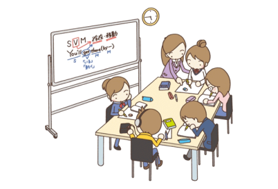 - 講師1名が平均4・5名の生徒を授業で指導する少人数制・個別カリキュラム指導